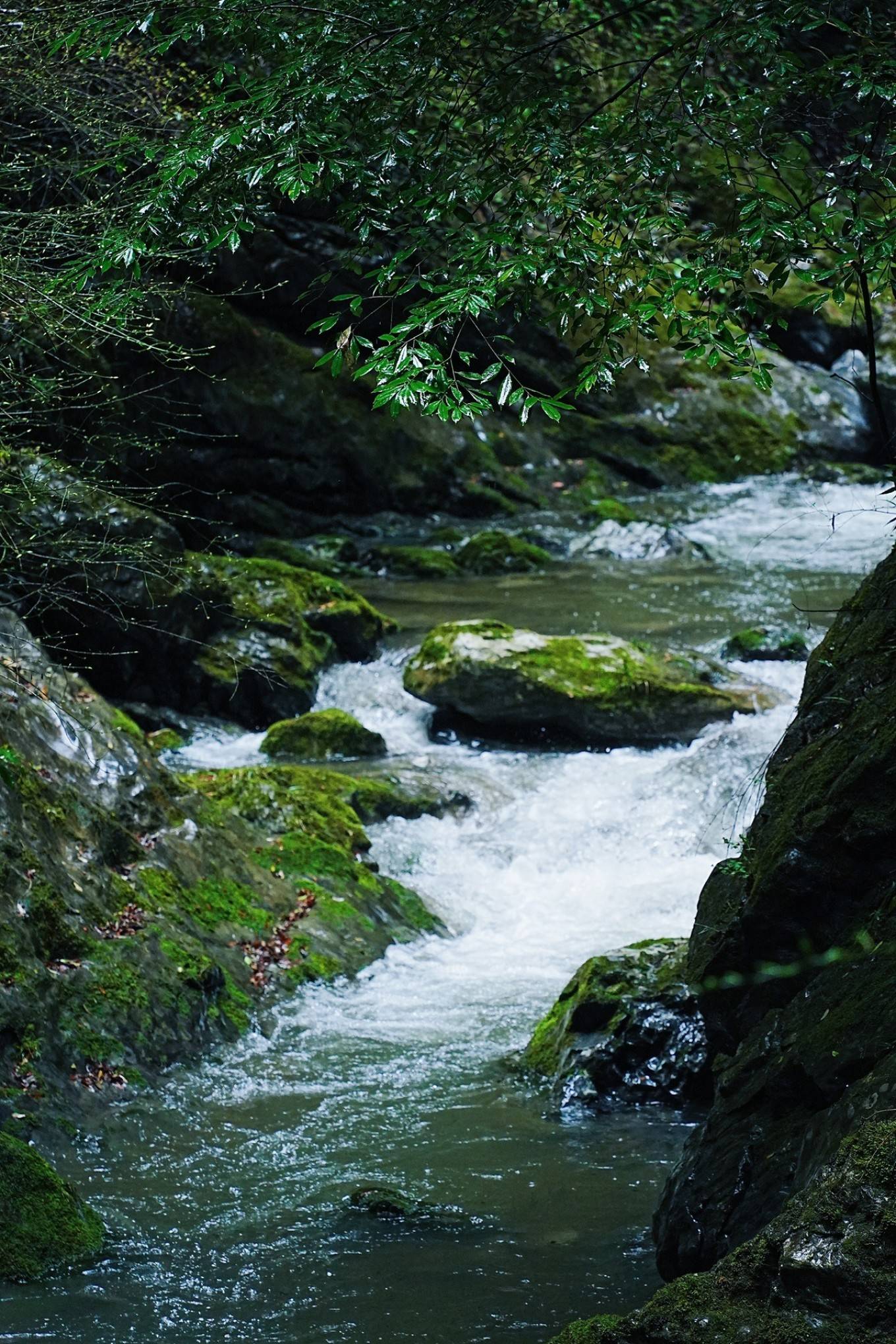 在山间绕行,一步一景。青色的石板路却好似常有行人踩踏,想必这样的美景也是非常吸引游人的。不时也有汹涌的激流在山谷冲刷,湿润的水汽覆盖在行人和游客的面颊,扑去满身的尘埃与浮躁的心灵。