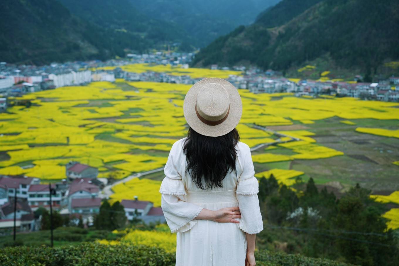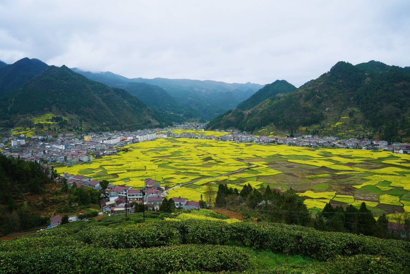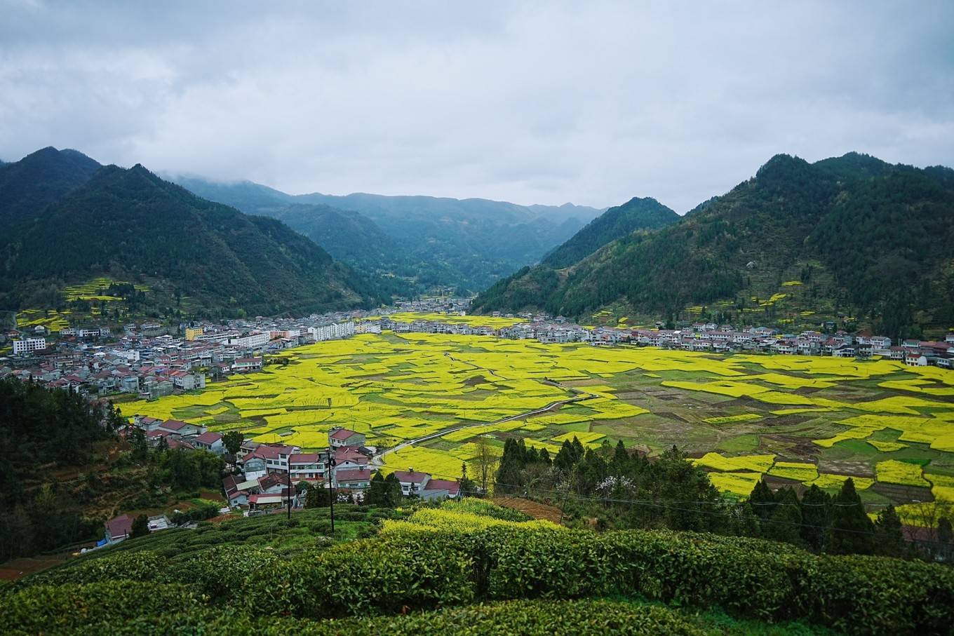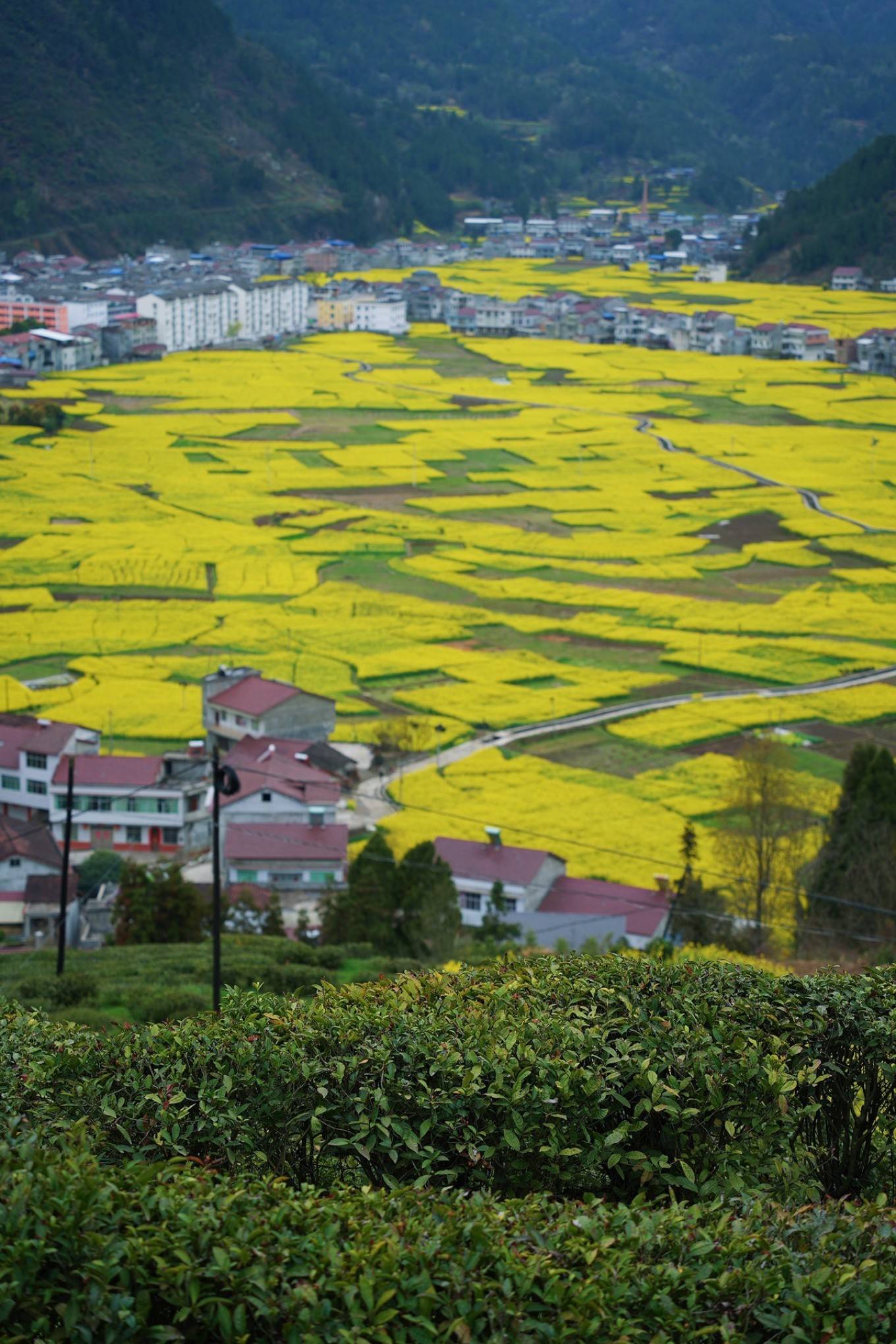 沿观景 台山 路又可走进周边茶园,两岸青山包裹着的花海向远方山谷散去,将春天的信息传遍了整个小镇。