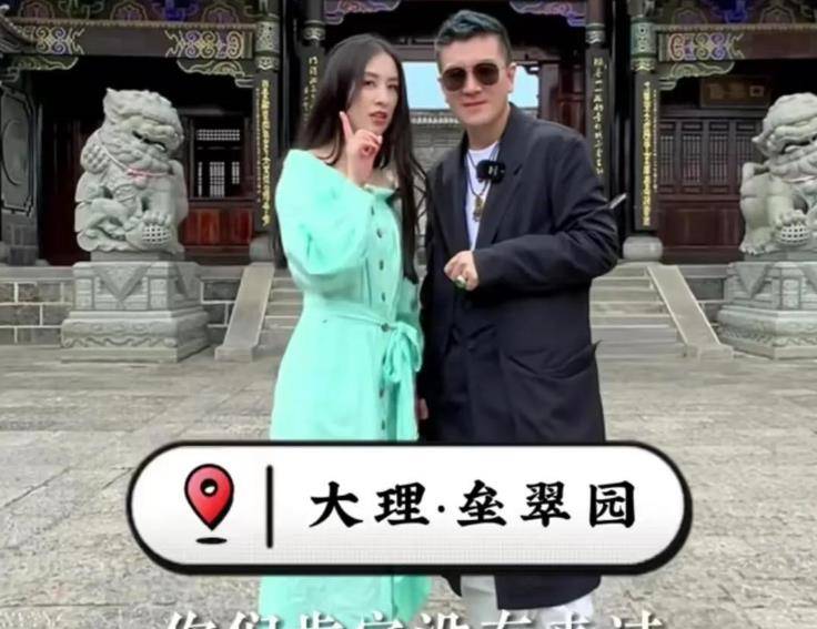 夫妻二人来到大理并没有选择去传统的景区去玩,而是来到了富有文化历史底蕴的“亝翠园”,从照片中不难看出身后的建筑颇有古代风格。