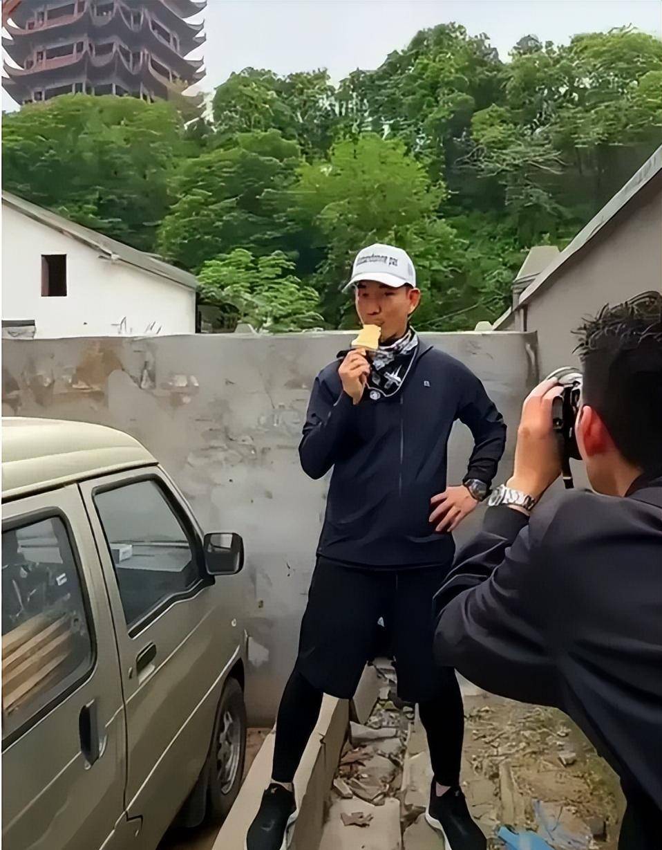 镜头拉远后,才发现任贤齐并没有离黄鹤楼很近,而是选择了一个偏僻的地方露脸,或也是考虑到黄鹤楼下人来人往挤不进去,加上自己的明星效应,只能是找了个“犄角旮旯”,一边吃着黄鹤楼的雪糕,一边和黄鹤楼合影,一举两得。