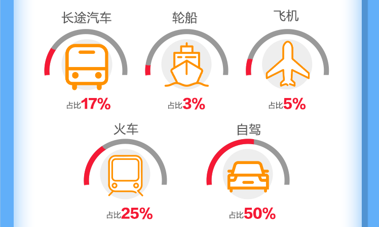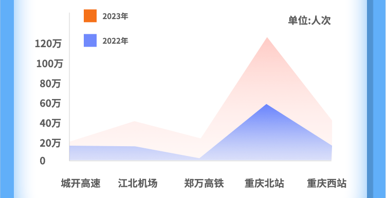 五一期间,自驾仍然是重庆人民出渝的主流交通方式,占比高达50%,然后依次是火车、大巴、飞机,其中,重庆北站成为重庆市内最繁忙的交通枢纽,共接待游客达99.8万人次,同比增长124%。