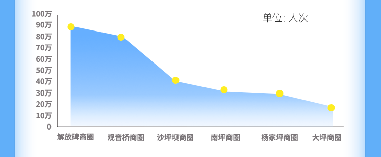 逛吃逛吃永远是游客来重庆的第一大主题。五一期间,六大典型商圈人气满满,其中解放碑商圈成为最受游客欢迎的商圈,日均游客达30万人次,其中女性顾客占比51.4%,观音桥商圈女性占比最高,为29%。
