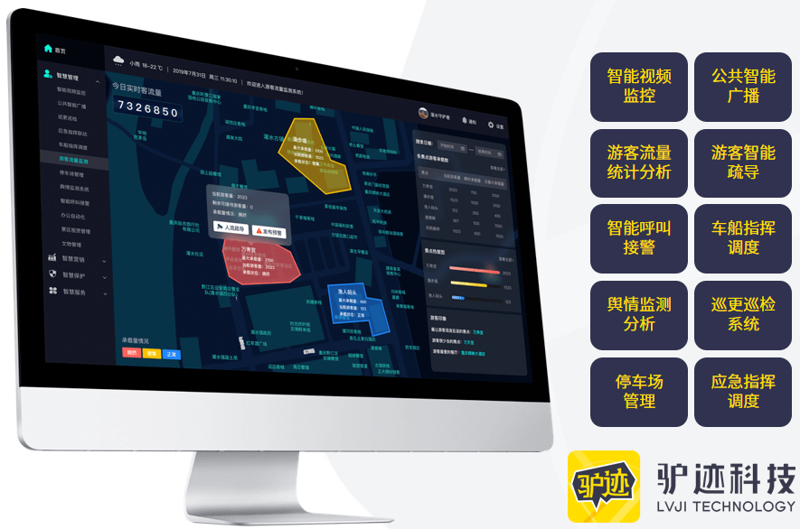 鼓励各级文化和旅游管理部门及景区管理单位建设5G+智慧旅游实时监测及应急指挥平台,提升旅游行业应急处理能力;探索5G关管理类业务在旅游景区的落地应用;推进建设立体安防体系,提升行业治理效能。在智慧旅游管理领域,驴迹提供基于“一云多屏 多屏合一”的理念,以云3DGIS引擎及云数据中心为支撑,实现各系统跨平台、跨网络、跨终端管理。