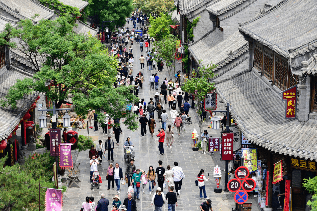 5月3日,游客在山东潍坊青州古城景区游玩。新华社发(王继林 摄)