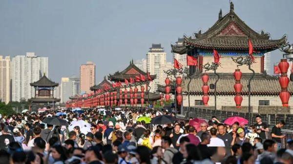 4月30日,游客在西安城墙景区参观游览。新华社 图