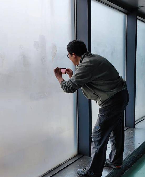 停好车你会发现,四周的落地玻璃全都充满水汽,完全看不到任何景色。其实,那不是什么水汽,是专门涂了漆料,让你看不到外面。