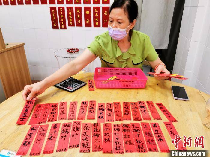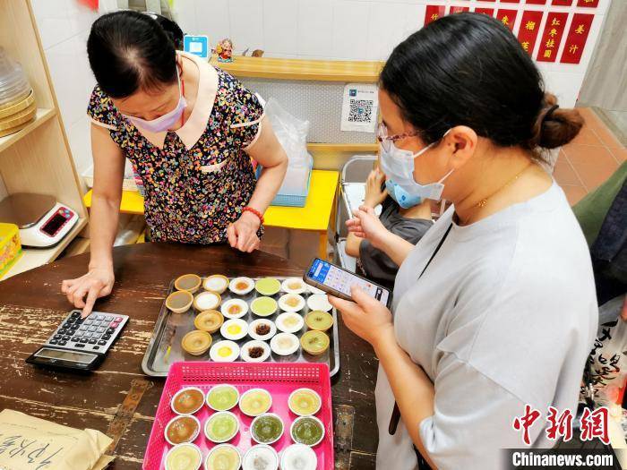 “阿姨,我每款口味都想要两个,用盒子装起来带走。另外,凤梨、桂花绿豆各一个,在这吃。”来自深圳的马女士说,她特别爱吃钵仔糕,每次到广州都去帮衬。