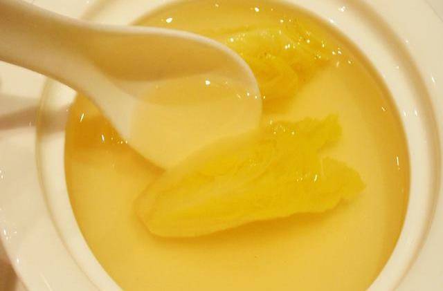 在制作菜品之前首先要制作高汤,而高汤又有清汤和浓汤之分。开水白菜所用的便是清汤,最主要的原料便是用鸡肉进行熬制,而且汤汁必须清澈见底,味道又鲜又香。为了能够使汤汁的味道更加丰富,还需要添加辅料,比如猪排骨、鸭、干贝等等。