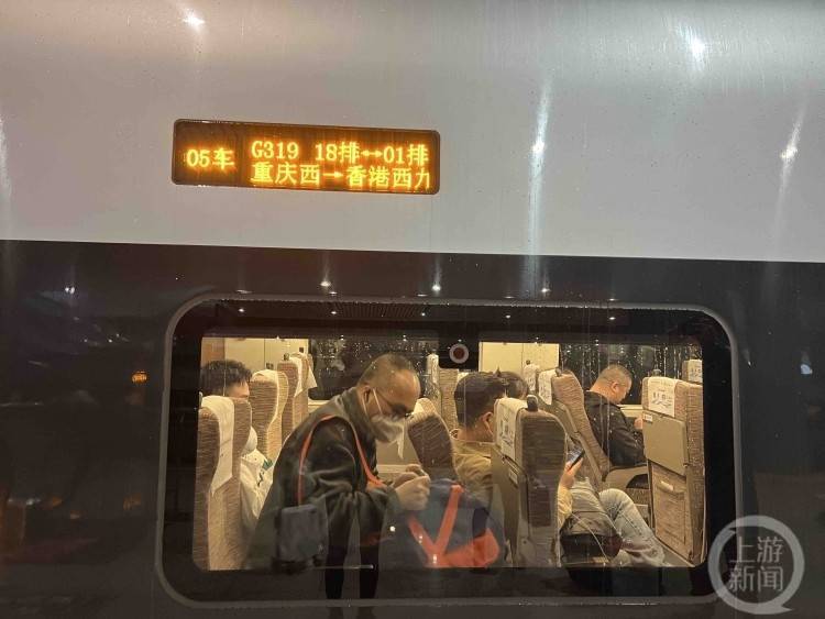 4号车厢的吴女士和丈夫也是首发列车的旅客,搭乘这趟列车回香港。“我是重庆人,早年在香港定居,每年都会回重庆探亲,这次回香港,正好赶上直达高铁恢复,太开心了。”吴女士说,直达高铁开通后,她往返两地更加方便。