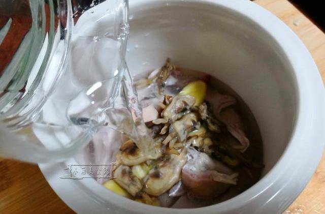 6、再把洗好的海蛏干放入进入,随后加入清水。