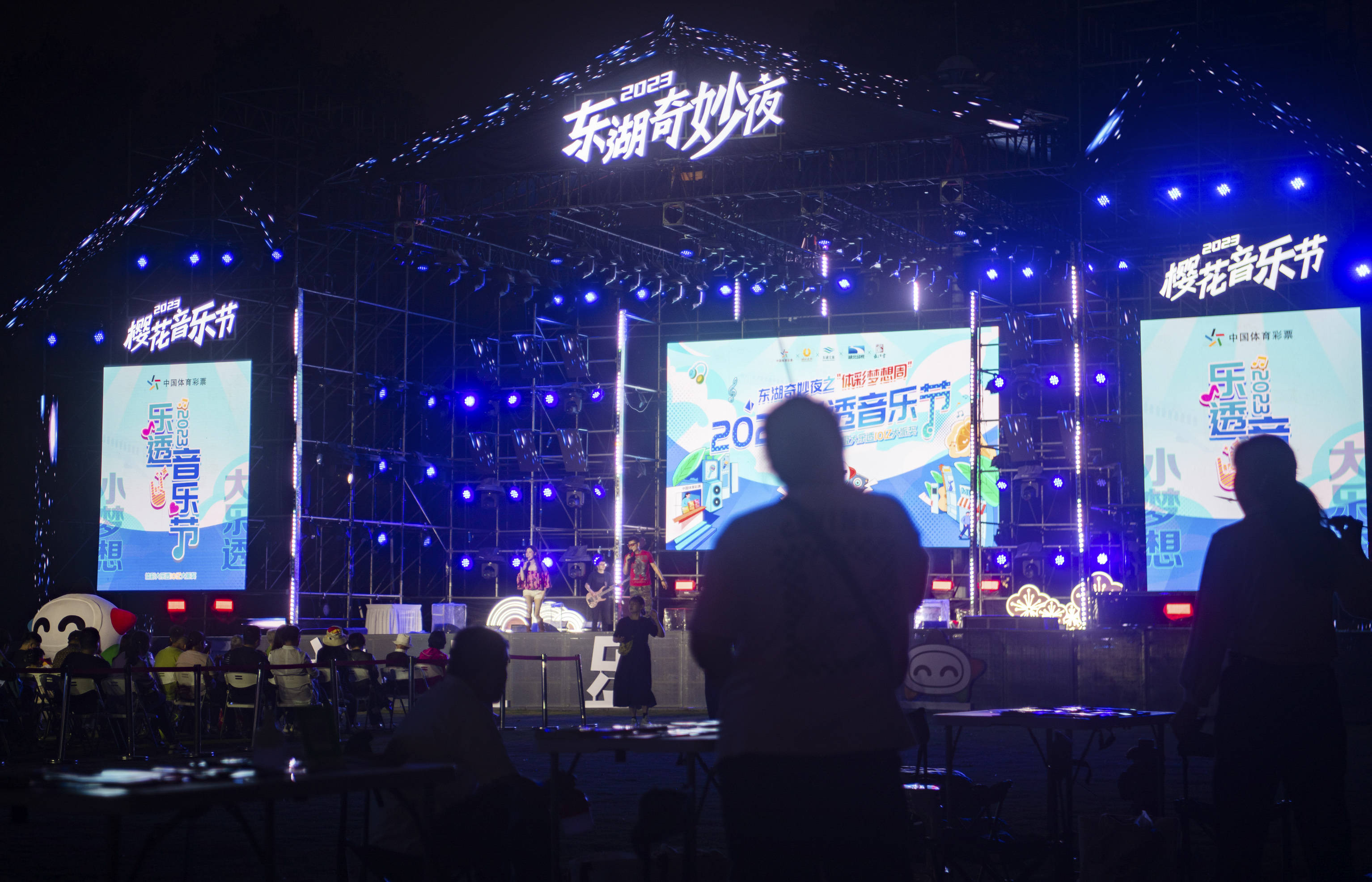 游客在东湖听涛景区欣赏音乐节。新华社记者伍志尊 摄