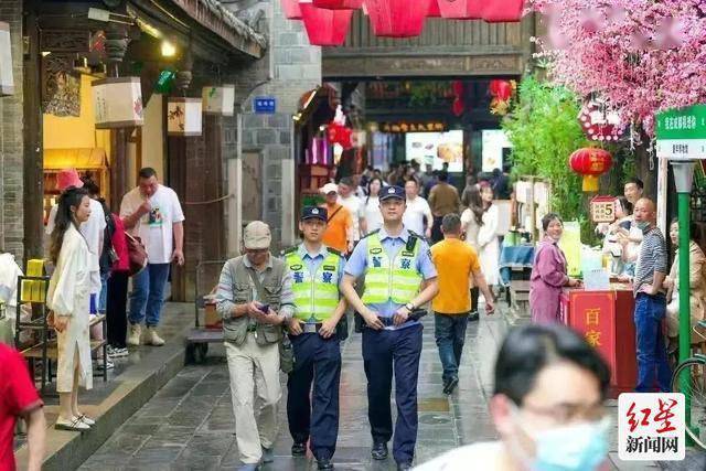 红星新闻网(记者 葛泓雨)5月4日报道“现在景区实行单向循环,请游客有序通行。”成都锦里景区警务小喇叭里反复播放着引导提示。记者从成都市公安局武侯区分局获悉,今年“五一”期间,成都武侯公安守土尽责、周密部署、科学布警,全力守护广大游客和市民平安,实现全区违法警情同比疫情前下降53%,其中扒窃、盗窃电瓶车等街面侵财类警情同比下降66%,全区社会大局平安有序。