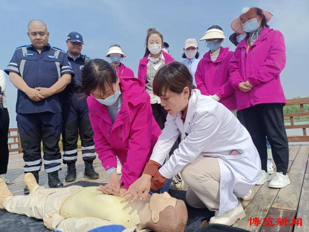 “五一”假期,桓台县“向阳花”家庭医生志愿服务队走进马踏湖国家湿地公园,开展急救技能培训。
