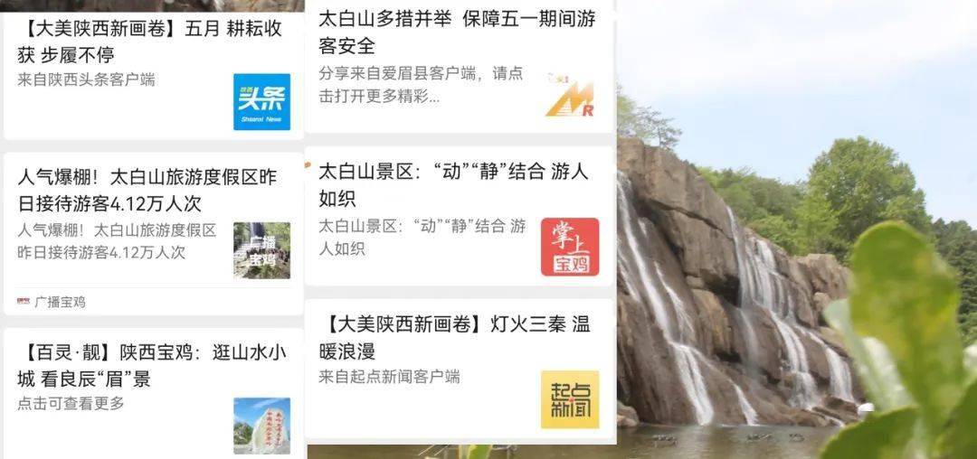 媒体聚焦,热度攀升。五一期间,太白山景区极具特色的美景、精彩活动、优质服务等被陕视以及多家主流媒体轮番报道和点赞,全面聚焦太白山,进一步提高了太白山旅游的知名度和吸引力。 五一假期期间分享云赏太白山直播链接,央视网,直播中国,新黄河,潮新闻,看度,湖北广电,宝鸡新闻网等 全国80余家媒体平台联合发布;宝鸡新闻网每天早上6:00-下午17:00单独推送。 同时,景区宣传营销中心立足“一微一抖一视频号”、小红书、b站等新媒体平台对景区进行强势曝光,太白山官方抖音直播间全天不间断直播景区动态、酒店、线路预售,以此助推太白山热度不断攀升。