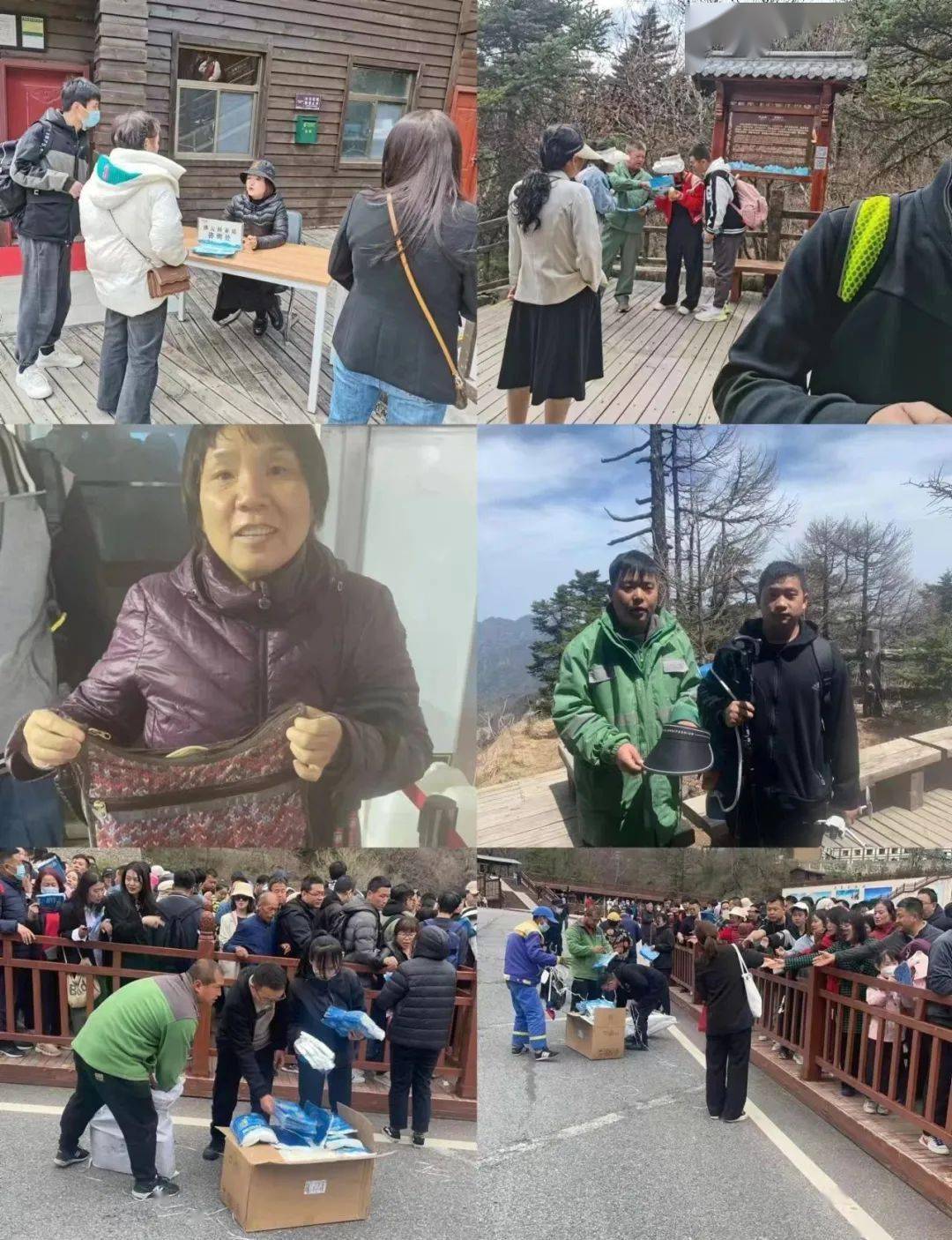 优质服务,温暖人心。五一假日期间,800多名太白山人坚守岗位,加班加点, 以满腔热情投入到游客接待工作中,为游客提供文明导引、问询咨询、线路推荐、秩序维护等服务,他们遍布景区各个值守点,解决紧急突发状况,假日期间涌现出大量好人好事,游客遗落财物被找回、小孩子走失被找回、医疗救助、救回落水游客、搀扶老人、给游客送姜汤雨衣····"谢谢你”"不客气”一件件美好的瞬间定格成属于太白山的温暖。 据初步统计,在小长假期间,旅游区工作人员帮助游客寻回手机、钱包、身份证件等物品460余件,成功寻回失主,回到游客手中。五一假日, 一张张热情的笑脸,一个个忙碌的身影,穿梭在人群中,形成一道亮丽的风景线,他们在平凡的岗位上,用心用情守护着每一位游客,谱写着大美太白山朴实无华的篇章。