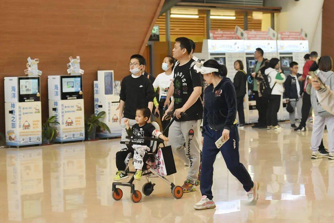 国家海洋博物馆“五一”期间的散客免费预约门票在节前就已约满。为了满足远道而来观众的参观需求,“海博夜场”特别推出,开馆时间延长至21点,内容丰富的“海博馆奇妙夜”吸引了众多亲子家庭。“从‘远古海洋’到‘龙的时代’再到‘发现之旅’,一路走下来收获满满。”市民窦女士告诉记者。窦女士和爱人提前研究了新区在“向海乐活节”期间的景区特色活动,决定带娃出门“放肆嗨”。“晚上听完了‘一场穿越古今的邂逅’主题讲解就住在海博馆里,明天我们还要去极地海洋公园,在海底隧道的帐篷里与‘鱼’共眠。”
