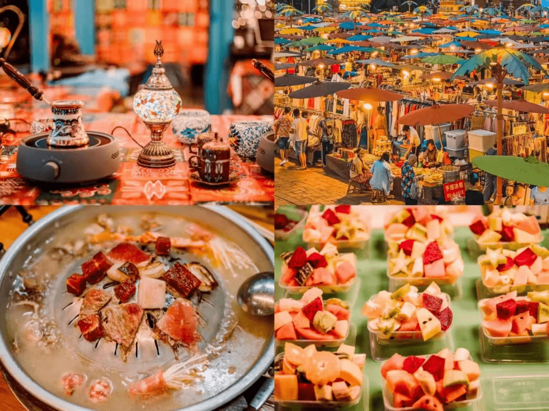 和三五好友打卡各式美食摊位