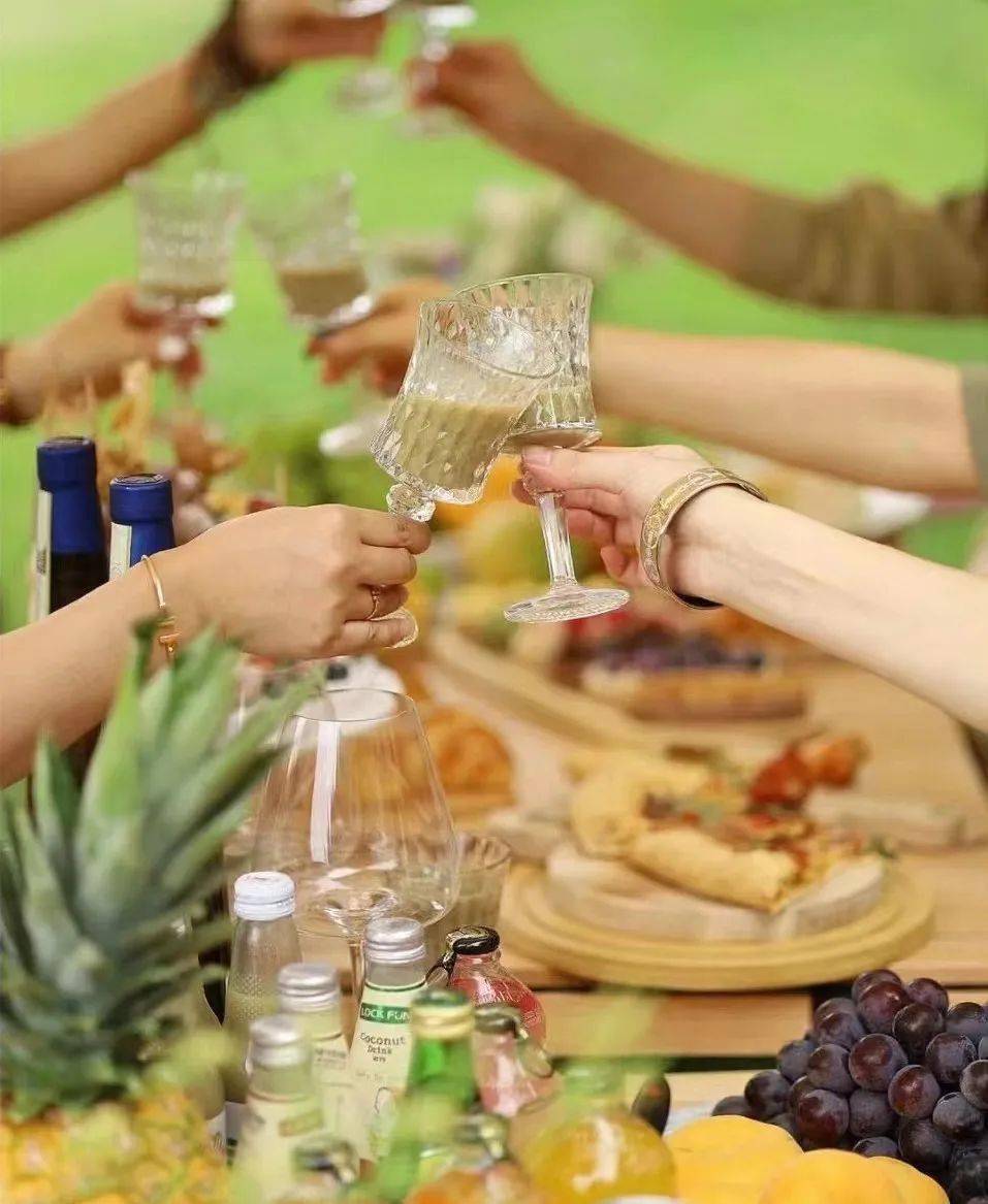 迎着晚风和朋友一起举杯