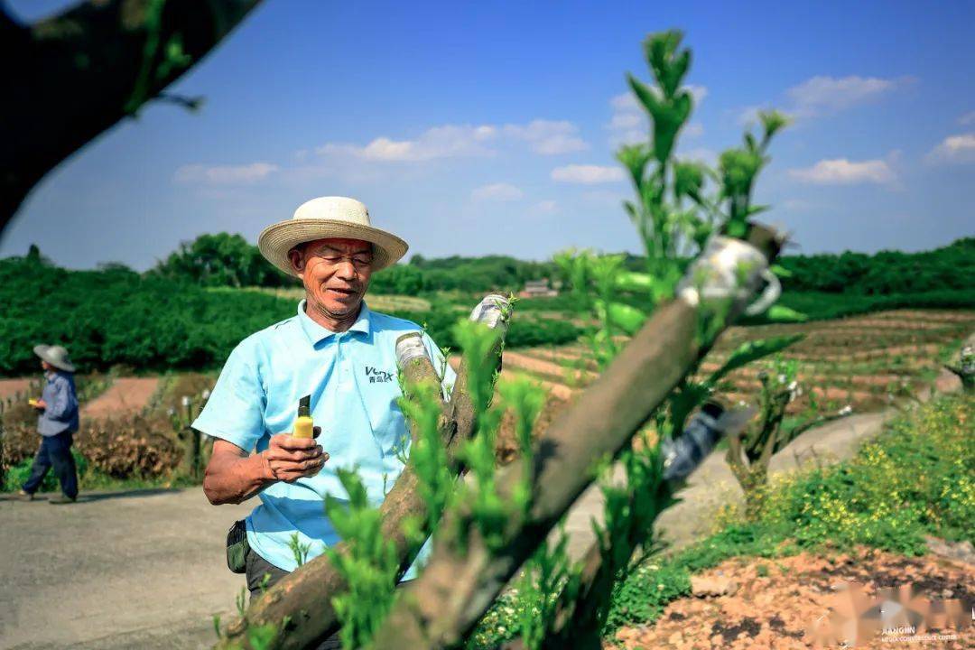 ▲白沙镇恒和村万亩橘海工人正在打芽 记者 袁孝椿摄