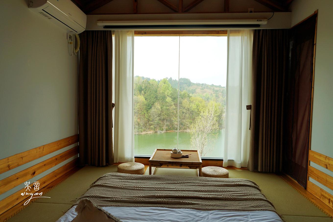 民宿占地3000多亩,坐拥两个山头,一片碧湖,因地制宜,依山而建,傍水而居。合理利旧,选择多样化,有傍湖的夫子山居和私汤别墅,更有山间的童话小木屋,超大的落地玻璃窗,拉开窗帘,青山绿水、田园山花尽收眼底。
