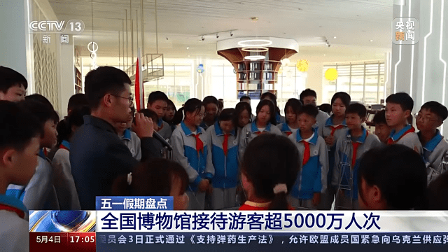 据国家文物局不完全统计,全国6000多家博物馆五一假期共接待游客超5000万人次,达历史同期最高水平,一级馆均达到游客接待上限。多家博物馆推出延长开放时间、增加公益讲解、扩大文创展示区域等举措,尽最大可能满足游客参观需求。