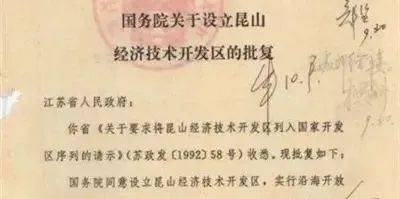 1992年8月,表现炸裂的昆山开发区终于正式获得“国批”,由“编外”转为“正册”,成为全国第一个县级国家级开发区。