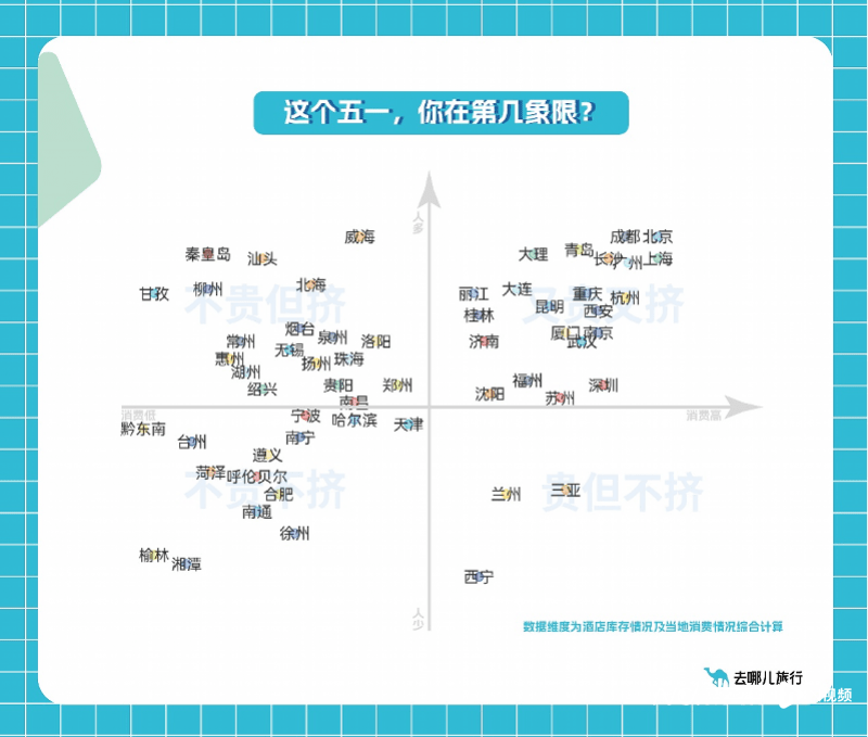 今年五一,没有冷门目的地。去哪儿平台数据显示,往年诸如德宏、淄博、甘南、伊犁、喀什、淮安、盐城、自贡、威海、日照、揭阳等相对冷门城市,今年五一酒店预订量同比2019年增长10倍以上,其中德宏酒店预订量增长最高,达22倍,淄博增长20倍。山南、临沧、塔城、延边、昌都等小众旅游目的地在节前一周已库存告急,假期前三日(4.29-5.1)的酒店房间,接近90%已被预订。