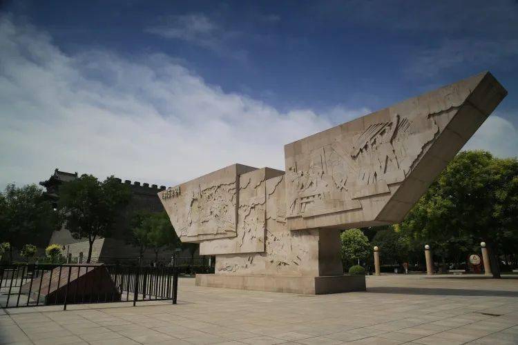 在历史文化公园东北,一座巨大“V”字形造型的邢台解放纪念碑巍然屹立。