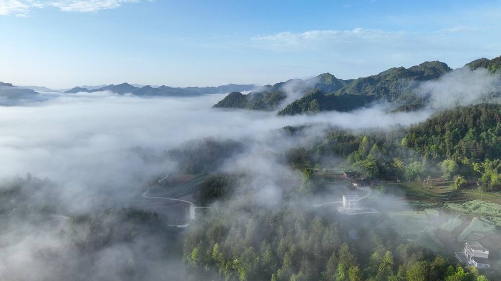 贵州遵义凤冈高山密林云雾缭绕,空气清新生态优美。