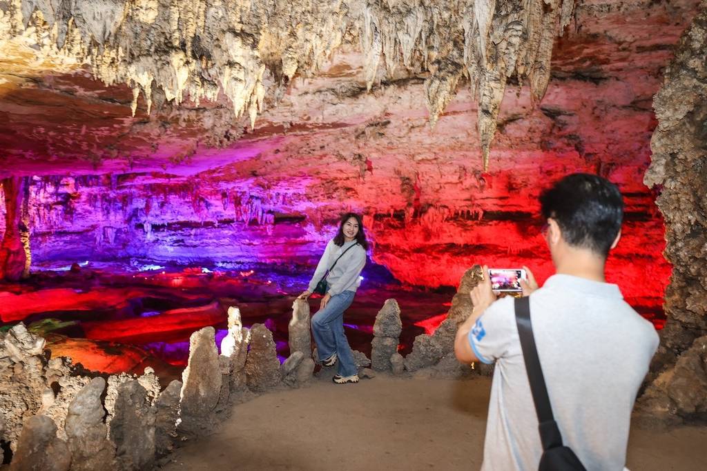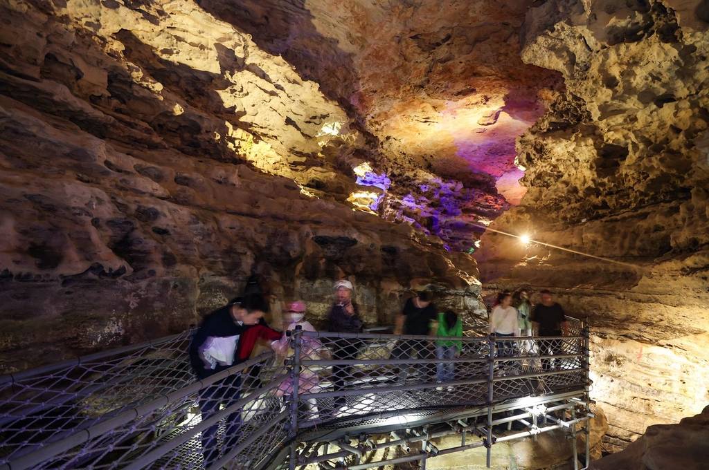 贵州绥阳双河洞国家地质公园引游客。