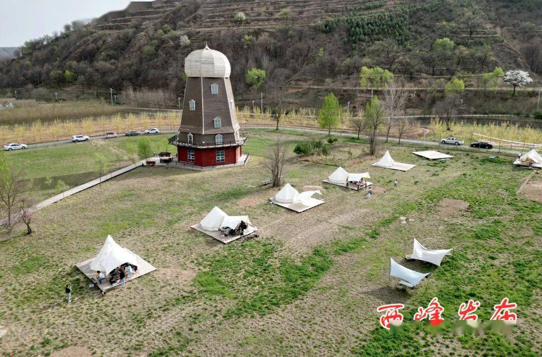 步入温泉镇八里庙村的太一农庄景区,层层叠叠的花田与周围的山峁、林地互相映衬,形成一道靓丽的风景。太一农庄景区依托张铁沟和周边山地,以黄土大塬自然风貌为特色,开发建设了观赏花田、窑洞民宿、林下烧烤等旅游项目。每年“五一”前后,这里的6万多棵丽桃、樱花、紫薇等竞相开放,美不胜收。