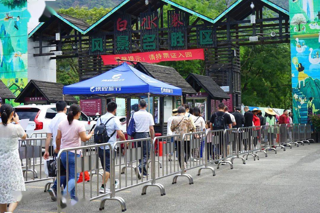 5月3日上午,虽已是假期最后一天,但 白水仙瀑景区仍有不少游客排队进园参观。