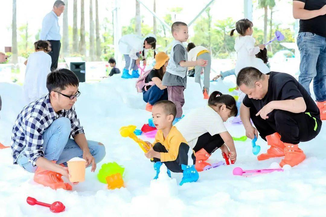 活动共有六大区域,包括冰雪世界、冰雪主题互动体验、冰雪主题巡游快闪、夏日水上运动、夏日音乐会和美食市集。在冰雪世界里,造雪机和泡泡机营造出了梦幻的冰雪氛围,孩子们穿着防滑雨靴、手拿雪球夹,跟小伙伴打雪仗、堆冰雪城堡。