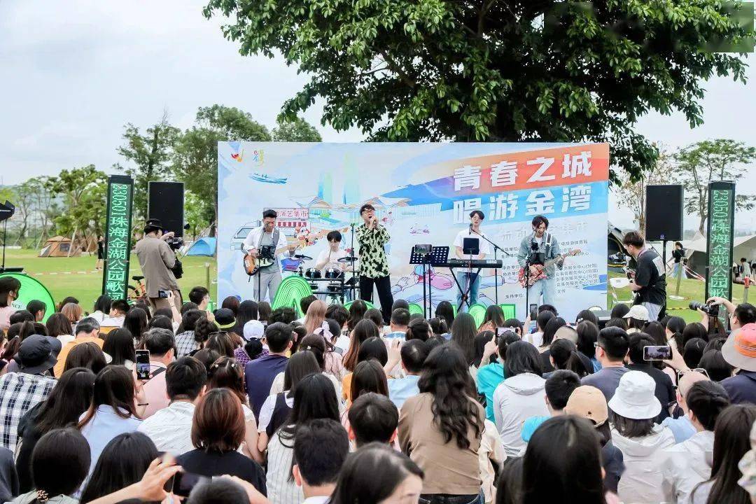 穿过一顶顶露营帐篷和一个个美食摊位,来到夏日音乐会区域,则可以看见以三灶狮舞、三灶鹤舞为代表的非遗展演、长者喜爱的民歌,还有孩子喜爱的儿歌表演。此外,还有年轻人爱听的民谣和5月1日当天广州著名音乐厂牌“OnceAgain”带来的音乐会。