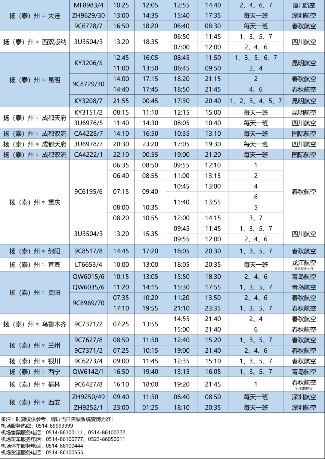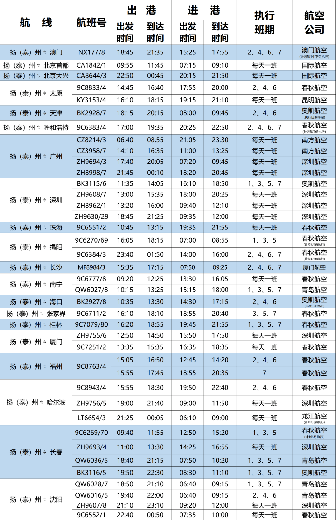 “五一”小长假,扬州泰州国际机场主要以旅游流、探亲流为主。4月29日为出行高峰,热门航线主要集中在广州、深圳、成都、重庆、贵阳、昆明等地,航班单班人次达到了147人次,5月3日为返程高峰,班均旅客达到132人次。