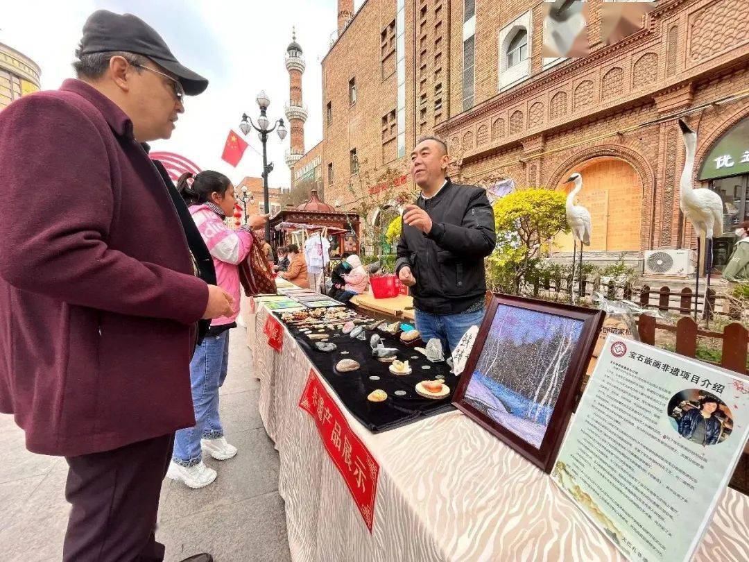 5月3日,乌鲁木齐市17个非遗项目齐聚大巴扎步行街,以“弘扬民族艺术,领略非遗之美”为主题,展示精彩的歌舞表演、琳琅满目的非遗产品,备受游客青睐。