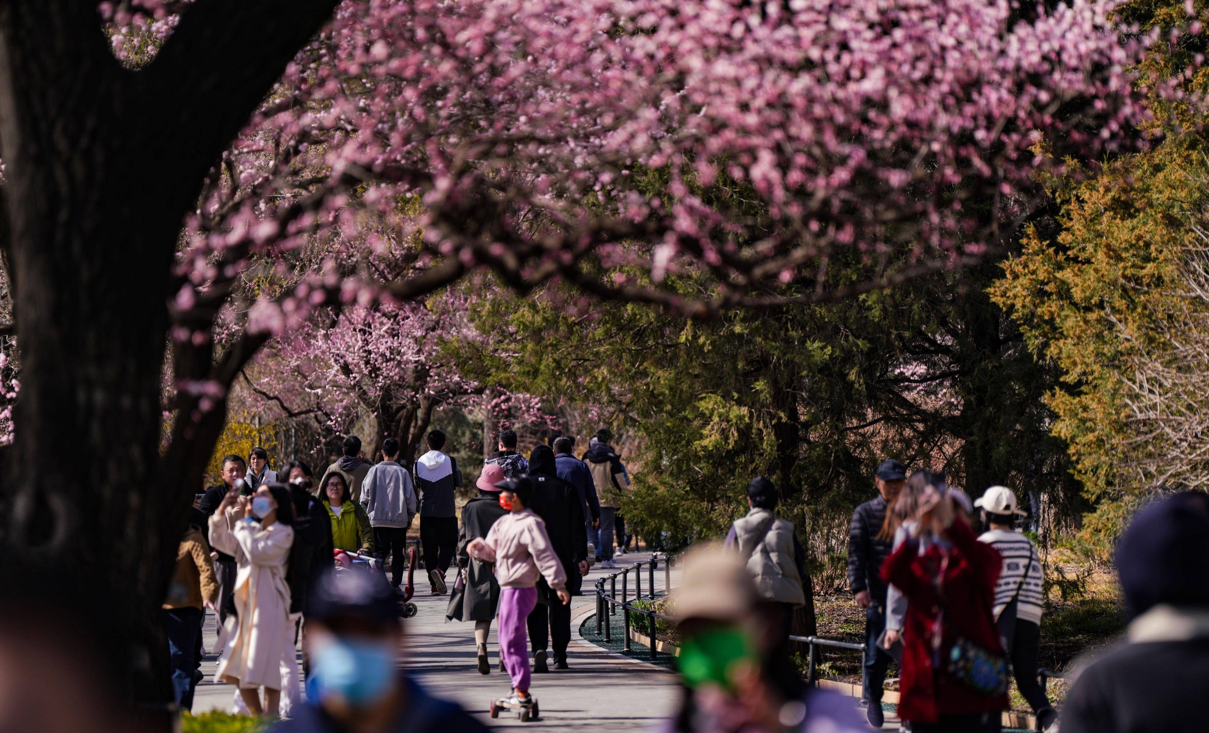 近日,地方植物园开启首届桃花观赏季,园内山桃、山杏、梅花等40万株春花陆续时尚,满园春色吸引市民游客前来观赏。