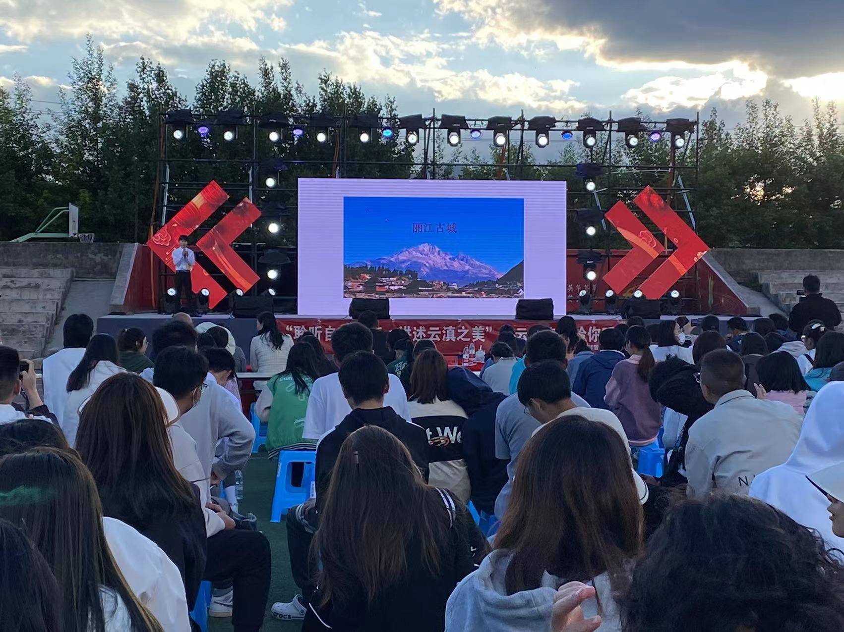 当晚比赛分为导游讲解、才艺展示两个环节。同学们选择的景点都是云南境内的闻名景点。昆明石林、丽江古城、云南民族村、大理古城、红河哈尼梯田、玉龙雪山……跟着选手们的讲解,仿佛遍览了各个景区的美景。