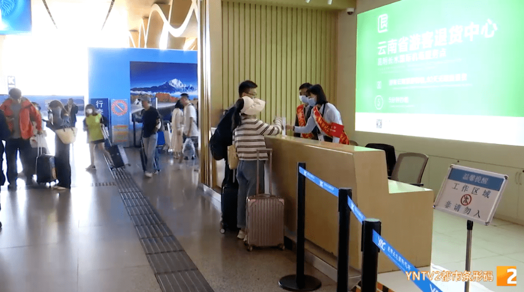 在长水机场的云南省游客退货中心,湖北到云南旅游的张先生正在办理退换货。