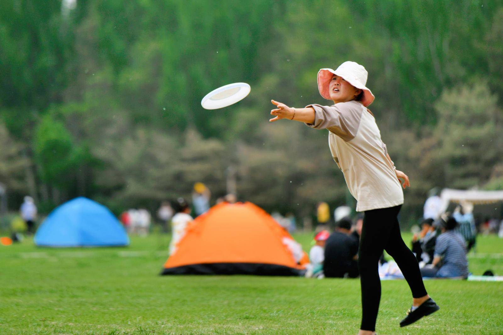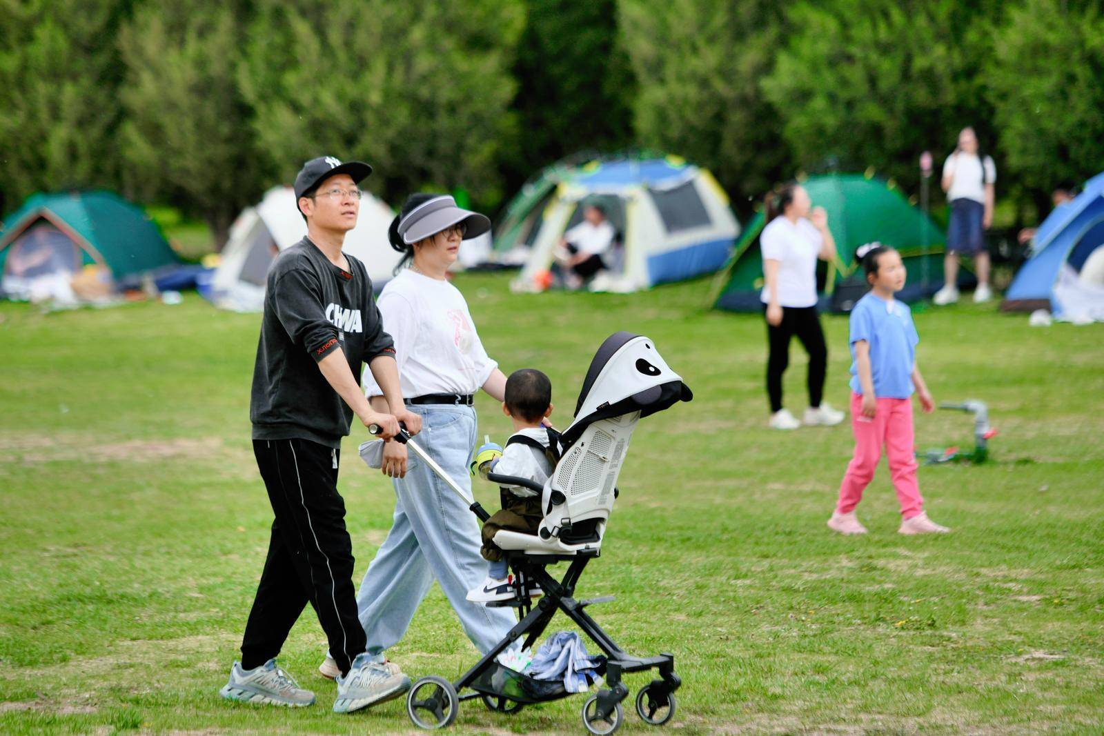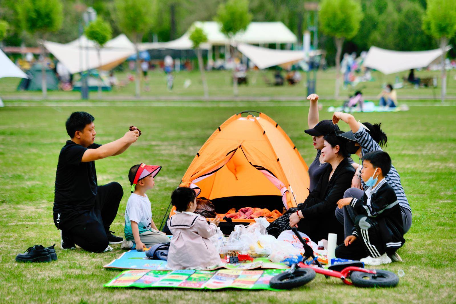 绿地上满是人们搭建的帐篷和欢乐的身影。