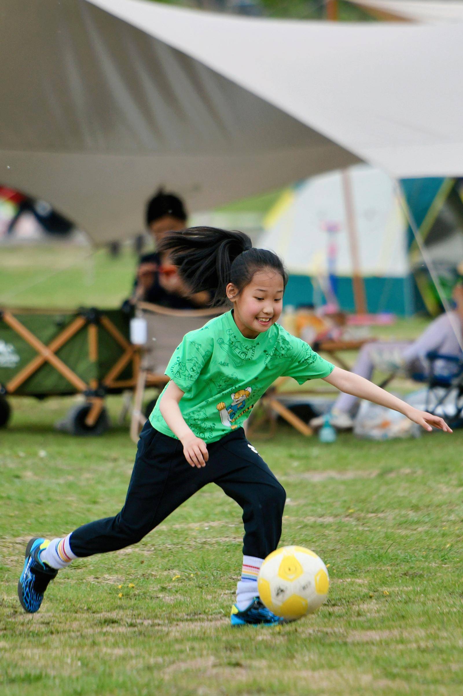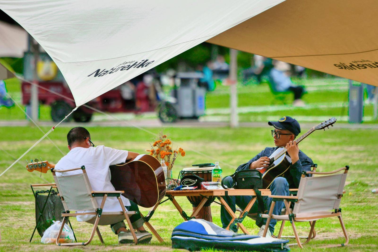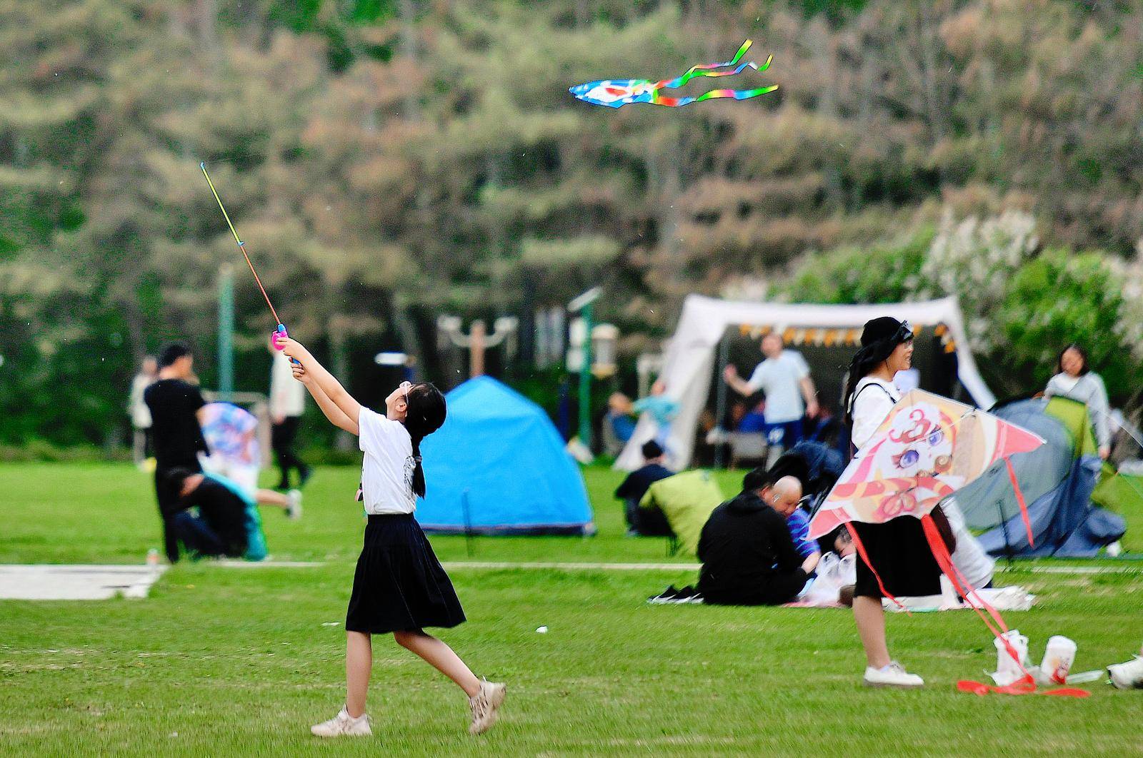 绿地上满是人们搭建的帐篷和欢乐的身影。