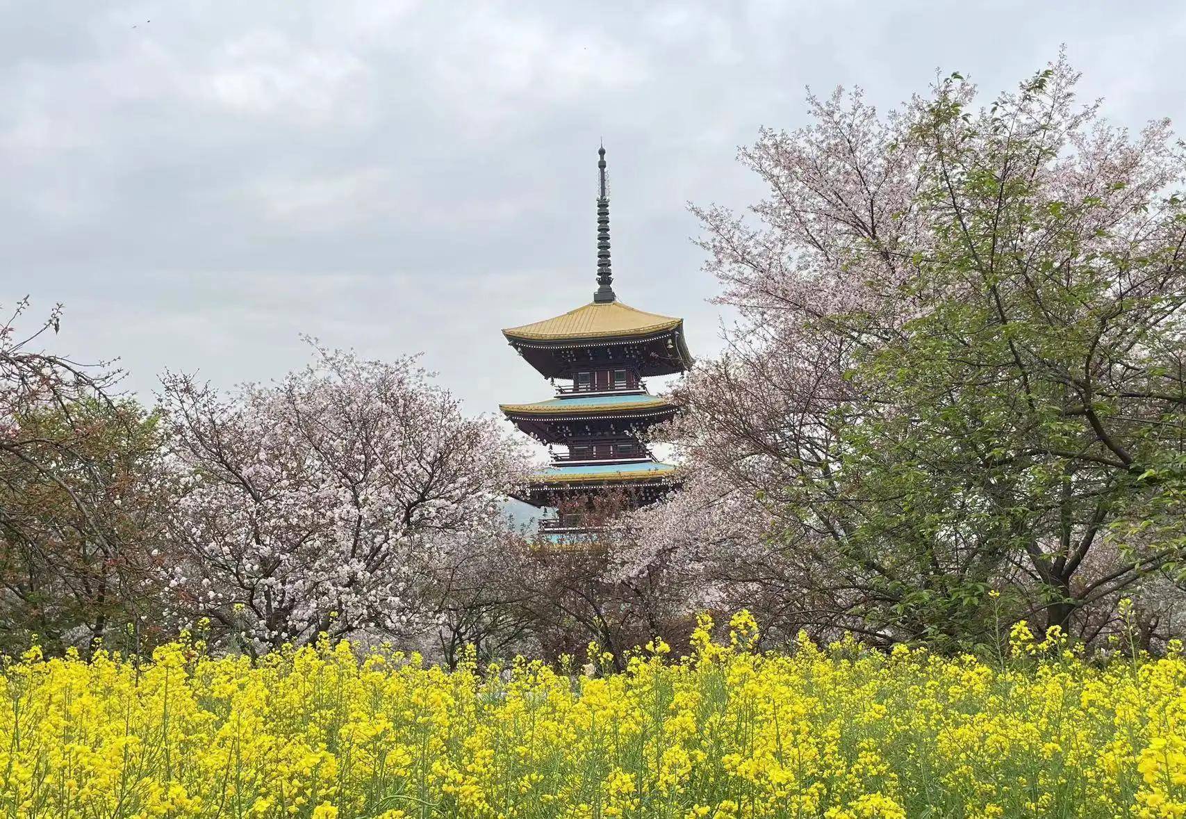 每年樱花盛开的时节,正是油菜花盛开的时候,东湖樱园照例还是在樱花树下种上了油菜,在一遍金黄色的油菜花的衬托下,白色的樱花更加纯洁,粉色的樱花更显妖娆。徜徉在花丛之中,微风拂过,状如垂柳的樱花随风摇曳,一片片掉落的花瓣在空中翩翩起舞,真可谓是落“樱”缤纷,美不胜收。