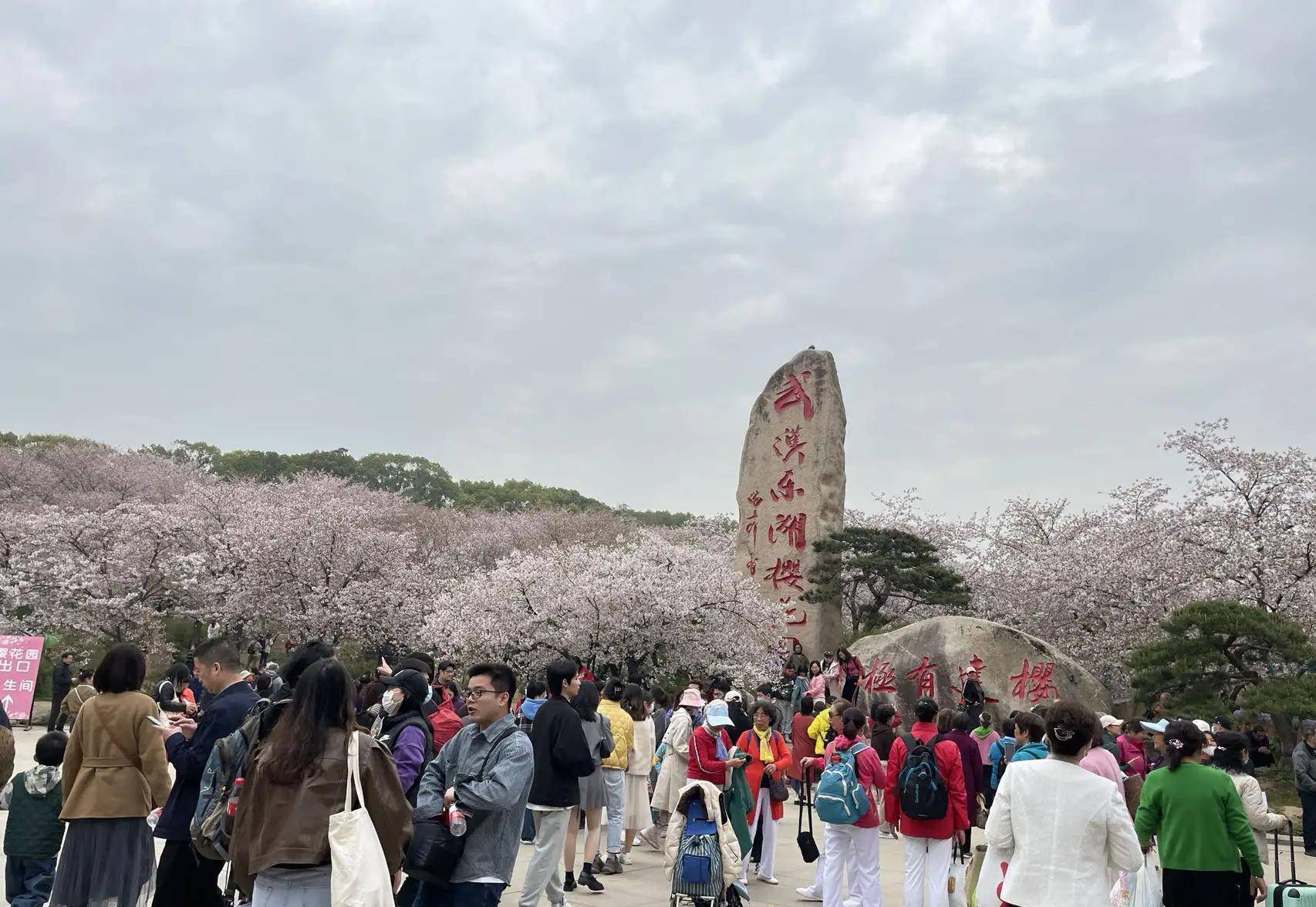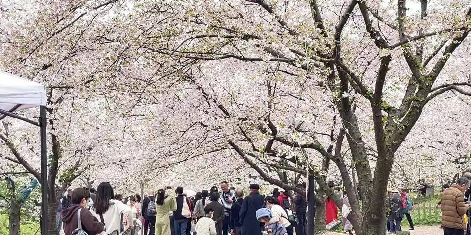 谁知来到樱园大门口,就被排队准备入场的人流吓了一跳,人可真的不少,进到园中,赏樱的人流熙熙攘攘、摩肩接踵,也难怪,有不少外地的朋友慕名前来赏花。