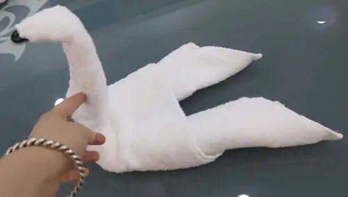 只把毛巾们叠成千纸鹤,叠完就走。