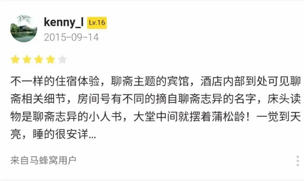 里面环境也不错,就是总突然发现有个蒲松龄的雕像盯着你,而且每个床头都放一本《聊斋》当睡前读物。