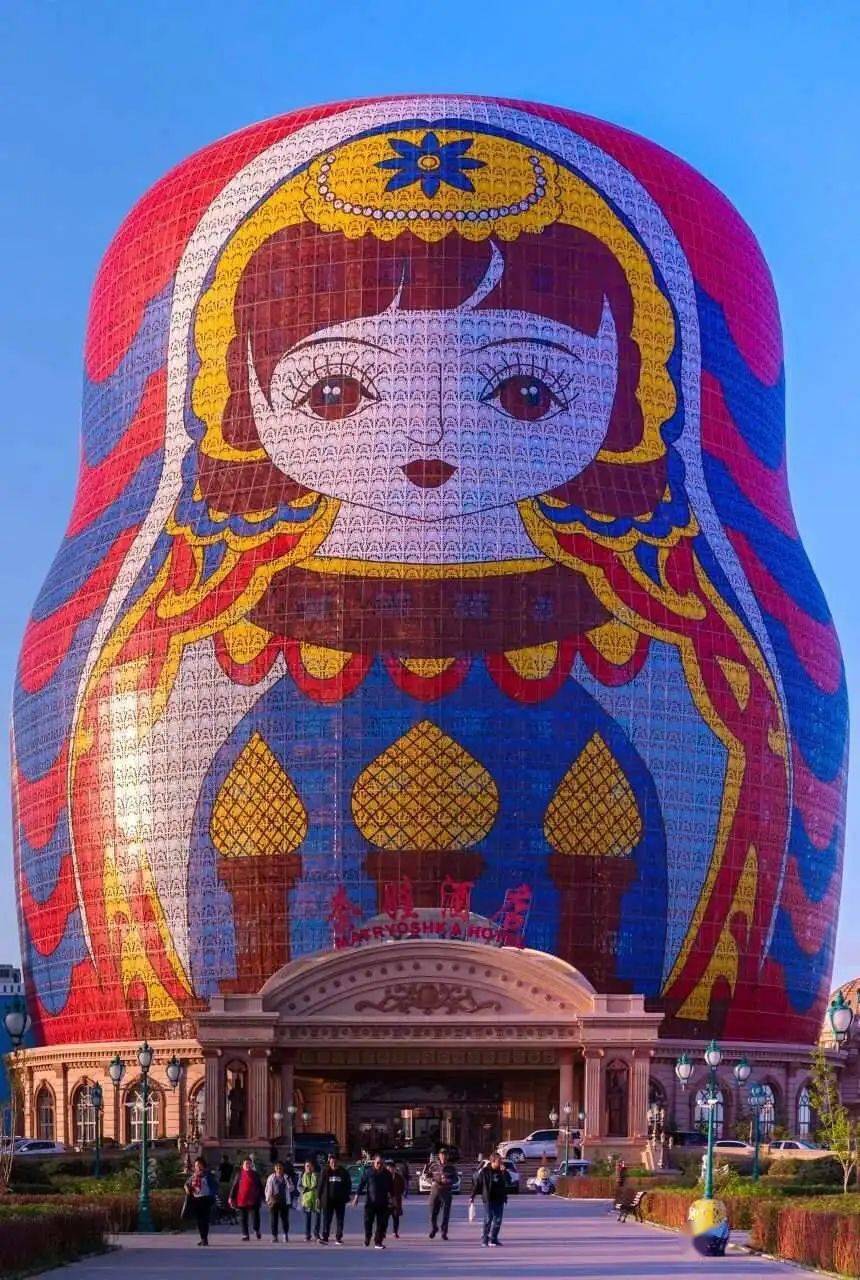 内蒙古的满洲里整了一个套娃酒店,大到外形小到牙刷都是套娃形的。