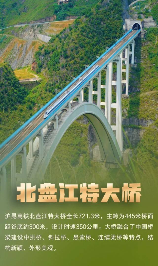沪昆高铁贵州段全长559.5公里,设计时速350公里,沿线地形起伏大、地质结构复杂。在这里,诞生了许多有名的铁路大桥,如北盘江特大桥等。
