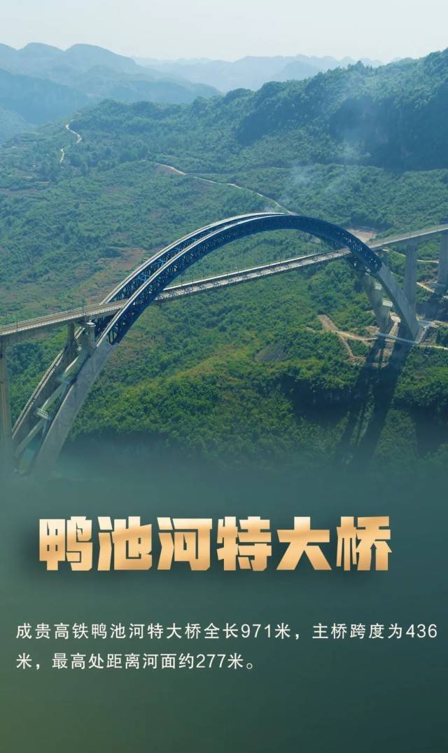 成贵高铁全长约632.6公里,是国家实施新一轮西部大开发的标志性工程之一。成贵高铁全线有隧道183座,桥梁365座,其中具有代表性的大桥有鸭池河特大桥、西溪河大桥等。