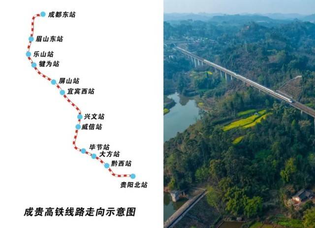 2019年12月16日,成都至贵阳高铁宜宾至贵阳段开通运营,标志着成贵高铁全线开通运营。其建成开通,进一步拉近了毕节与贵阳、西北、华东、华南地区的距离,对贵州特别是毕节全面推进乡村振兴具有重要意义。