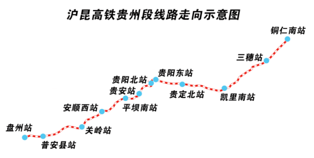 2015年6月18日,沪昆高铁新晃西至贵阳北段开通,2016年12月26日贵阳北至昆明南段开通,缩短了贵州乃至西南地区东出北上的时间。